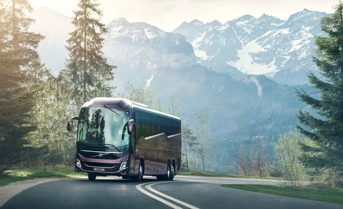 А ось автобусне підрозділ - компанія Volvo Buses презентує на виставці дві нові туристичні моделі. Серед них і новий флагман марки - Volvo 9900 , Що відрізняється ступінчастою бічний віконної лінією.