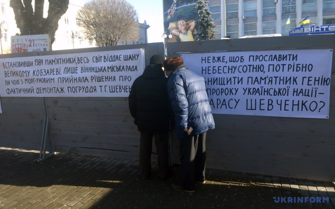 Це тільки частина передісторії, тому що потім, після появи ініціативи встановити пам'ятник загиблим героям Майдану, у Вінниці ламали списи і з приводу того, яким йому бути і де стояти. Вінницька міськрада вирішила, що на площі Небесної Сотні, де вже три роки стояв «незаконний» Шевченко. Прихильники збереження статус-кво навіть намагалися провести через обласну раду рішення про звернення до міської ради, щоб той відмовився від його знесення. Але громадські же активісти ту сесію благополучно зірвали.