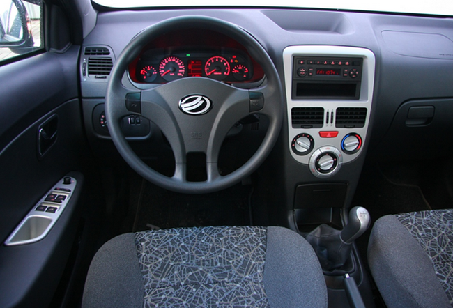 Взагалі кажучи, за комплектацію цього автомобіля зовсім не соромно. Перерахую основне, що є на борту версії Люкс, яка знаходиться у нас на тесті (її вартість - 90600 грн): АБС; гідропідсилювач керма; кондиціонер; дві подушки безпеки; протитуманні фари; магнітола з USB-входом, підспівували через чотири динаміки; литі 15-ти дюймові диски; задній парктронік; центральний замок з штатною сигналізацією, яка відкриває і закриває автомобіль з ключа.